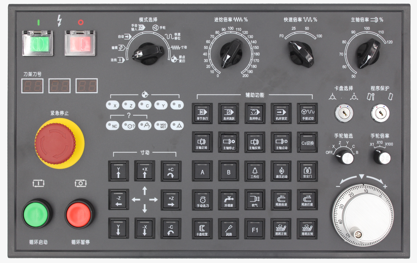 標(biāo)準(zhǔn)車床面板SS-BZ-4025T是山森數(shù)控面向數(shù)控車床行業(yè)推出的一款高穩(wěn)定性、高兼容性的操作終端。面板整體采用400×250mm的緊湊外形設(shè)計(jì),在有限空間內(nèi)實(shí)現(xiàn)功能的高度集成,使操作區(qū)域布局更加合理,按鍵觸感清晰