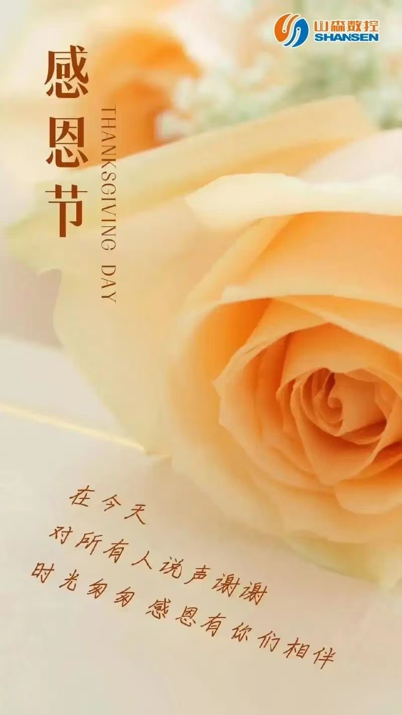 一年一度的感恩節(jié)如約而至,這是一個(gè)充滿溫暖與感恩的時(shí)刻。在這個(gè)特別的日子里,山森數(shù)控懷著無(wú)比感激的心情,向所有支持、信任我們的客戶表示最真摯的感謝。從創(chuàng)業(yè)初期到如今的行業(yè)深耕,山森數(shù)控始終專注于高端數(shù)